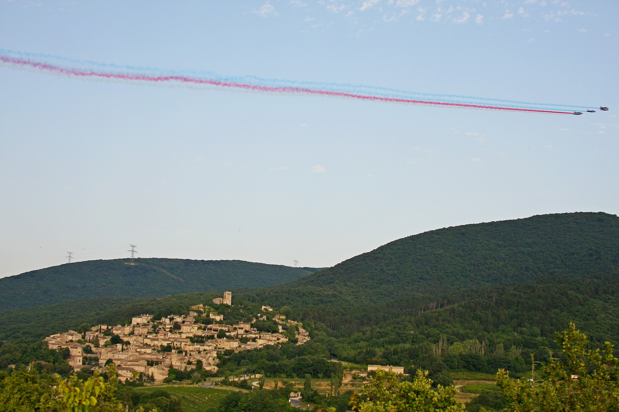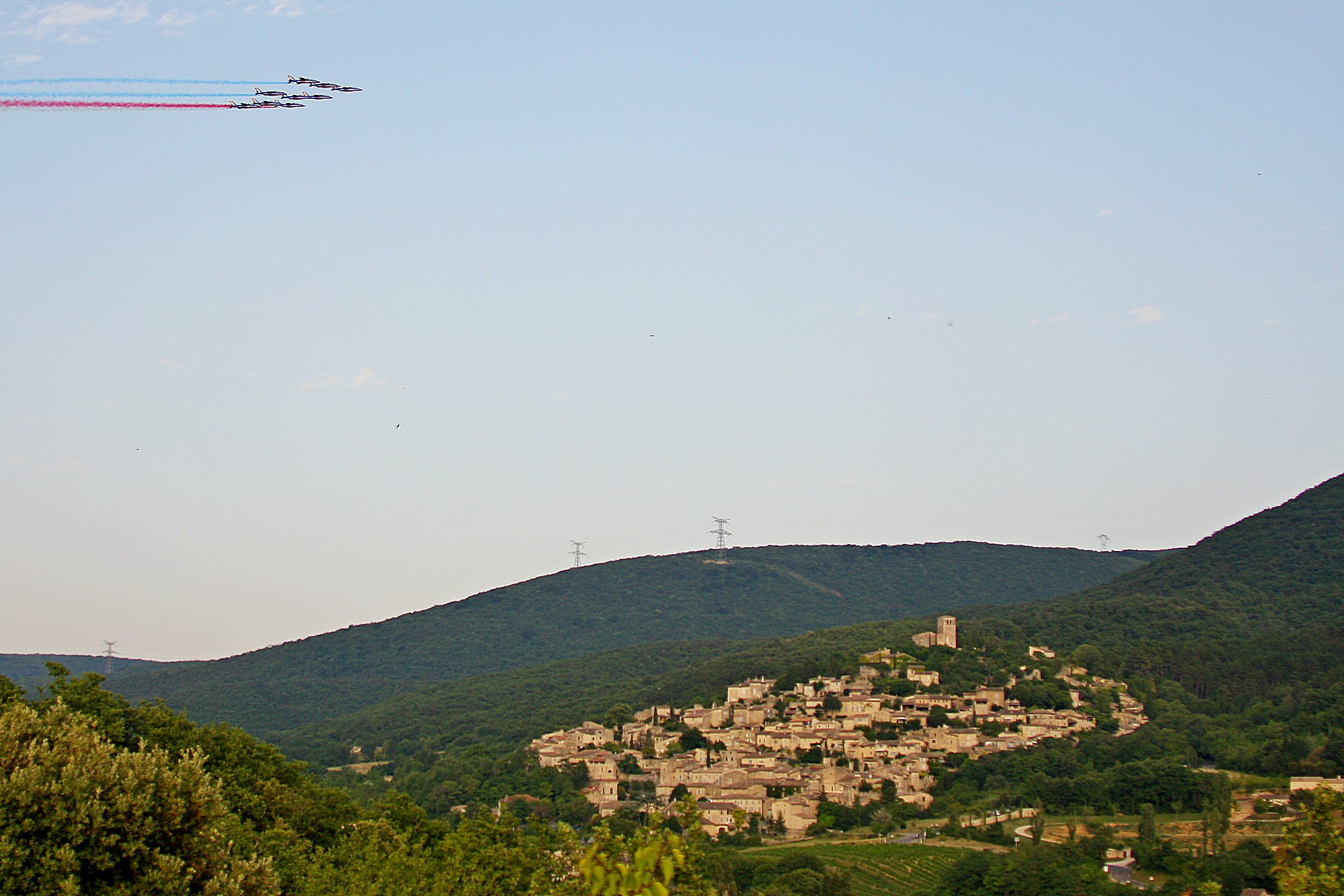 La Patrouille de France nous a fait l’honneur et l’amitié de défiler au-dessus de Mirmande, le dimanche 5 juillet, aux alentours de 19h45 (fonction du meeting aérien de Valence).
